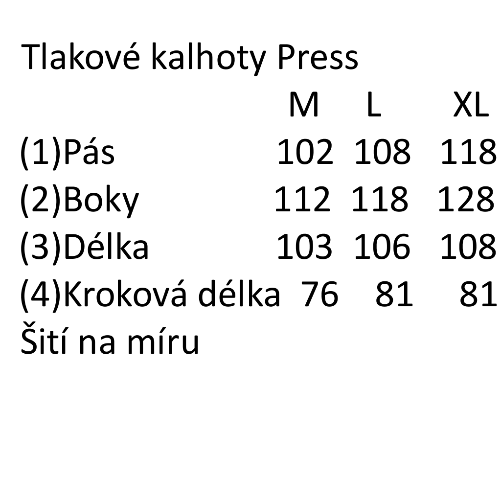 Výroba tlakových kalhot PRESS je na zakázku, doba dodání 2-4 týdny.